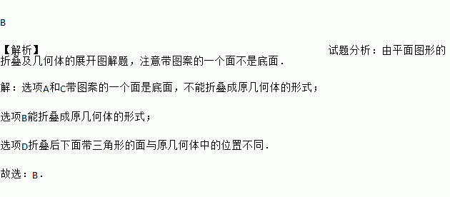 且有一个面涂有颜色,下列图形中,是该几何体的表面展开图的是 ( )
