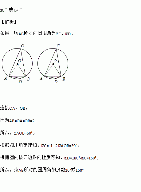 在半径为的中,弦的长为,则弦所对的圆周角的度数为________.