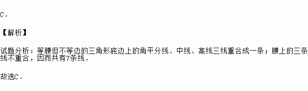 等腰但不等边的三角形的角平分线、高线、的总条数是( )