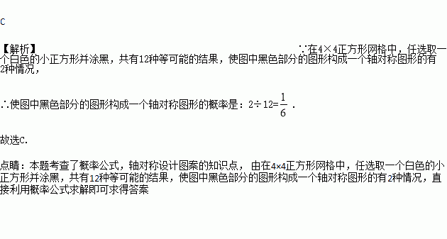 如图,在4×4正方形网格中,任选取一个白色的小正方形并涂黑,使图中黑色部分的图形构成一个轴对称图形的概率是