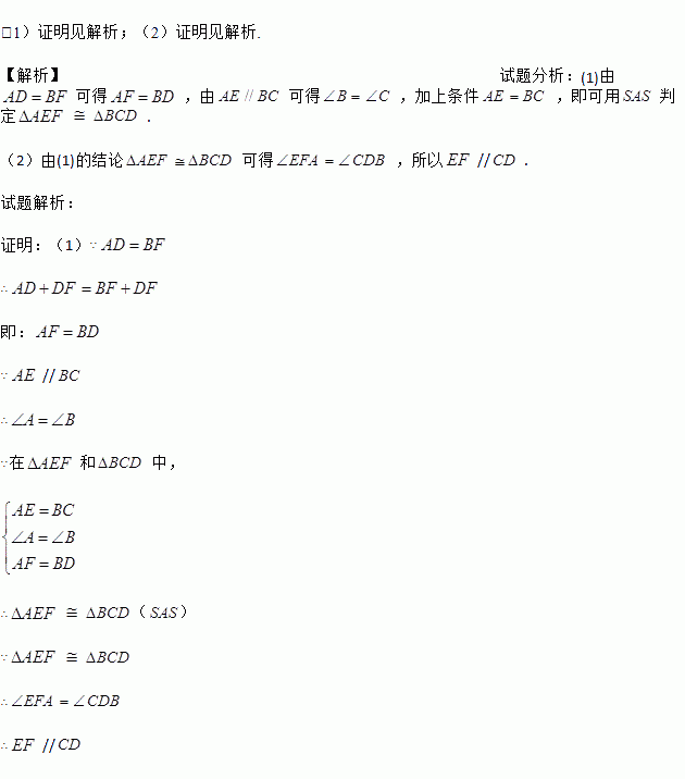 如图,A、D、F、B在同一直线上,AD=BF,AE=BC,且AE∥BC.求证: