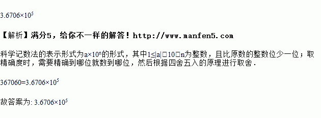 用四舍五入法把367 060精确到十位,并用科学记数法表示为_________.