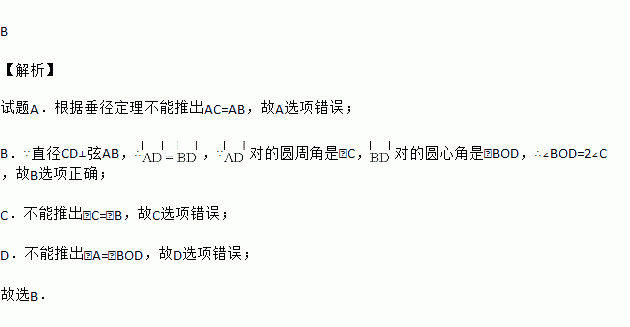 如图,在⊙O中,直径CD⊥弦AB,则下列结论中正确的是( )