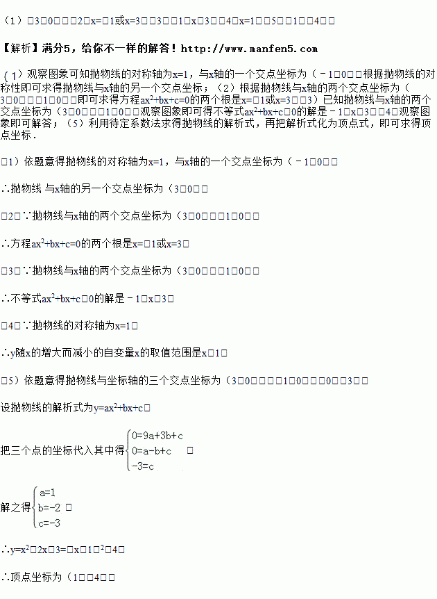 已知抛物线y=ax2+bx+c的图象如图所示,根据图象解答下列问题: