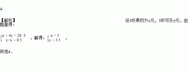 如图所示,小刚手拿20元钱正在和售货员对话,请你仔细看图,1听果奶、1听可乐的单价分别是( )
