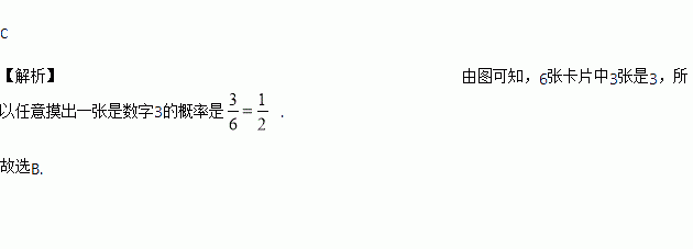 有6张写有数字的卡片,它们的背面都相同,现将它们背面朝上(如图),从中任意摸出一张是数字3的概率是( )