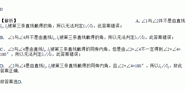 A. ∠2=∠1 B. ∠1=∠4 C. ∠2=∠4 D. ∠4+∠2=180°