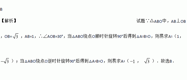 ,AB=1.将△ABO绕O点旋转90°后得到△A1B1O,则点A1的坐标为( )