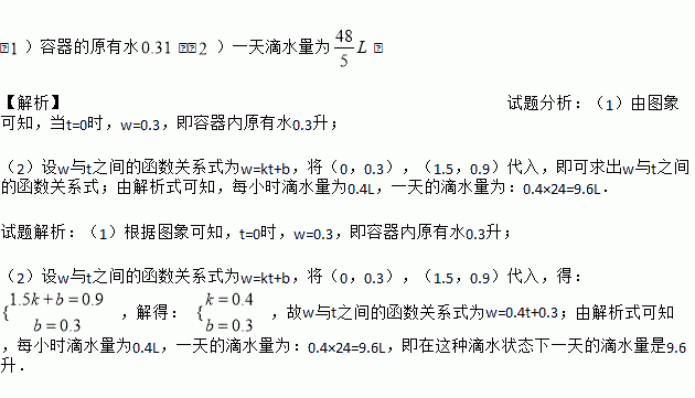 之间的函数关系式,并计算在这种滴水状态下一天的滴水量是多少升.