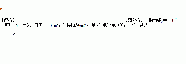 抛物线y=-3x2-4的开口方向和顶点坐标分别是( )