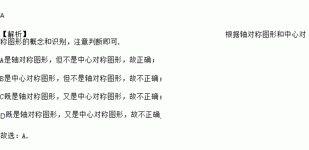 下列图形中,是轴对称图形但不是中心对称图形的是 ( )