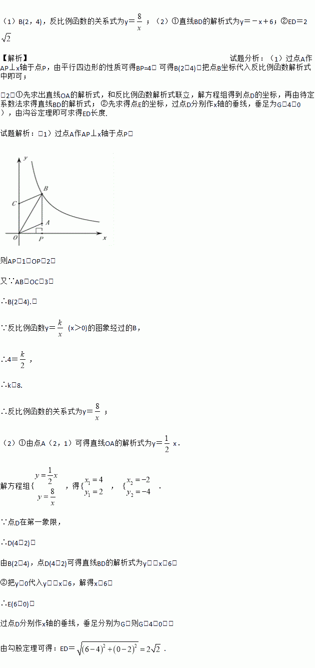 (x>0)的图象于点D,过B,D的直线分别交x轴、y轴于E,F两点,①求直线BD的解析式;②求线段ED的长度.