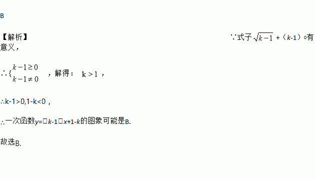 若式子+(k-1)0有意义,则一次函数y=(k-1)x+1-k的图象可能是( )