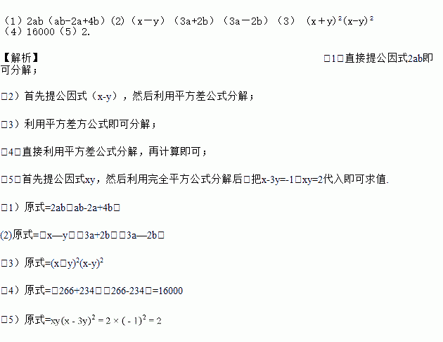 (5)利用分解因式计算求值:已知x-3y=-1,xy=2,求x3y-6x2y2+9xy3的值.