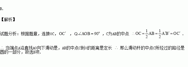 如图,在直角∠O的内部有一滑动杆AB.当端点A沿直线AO向下滑动时,端点B会随之自动地沿直线OB向左滑动.如果滑动杆从图中AB处滑动到A/B/处,那么滑动杆的中点C所经过的路径是( )