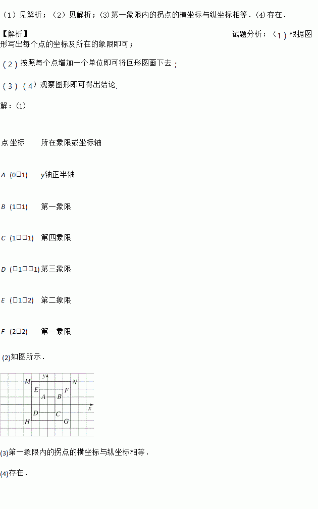 (3)说出回形图中位于第一象限的拐点的横坐标与纵坐标之间的关系;