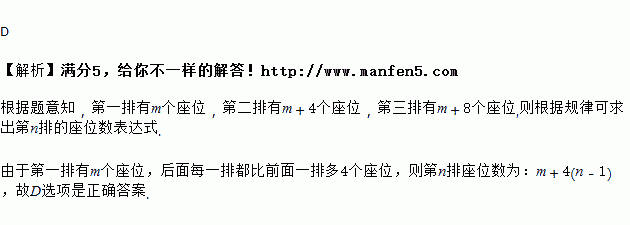 “学宫”楼阶梯教室,第一排有m个座位,后面每一排都比前面一排多4个座位,则第n排座位数是( )