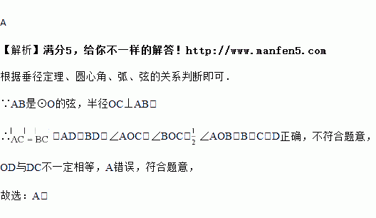 A. OD=DC B. 弧AC=弧BC