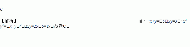 C 【解析】【解析】 ∵x+y=﹣5,xy=3,∴x2+y2=(x+y)2﹣2xy=25﹣6=19.故选C.