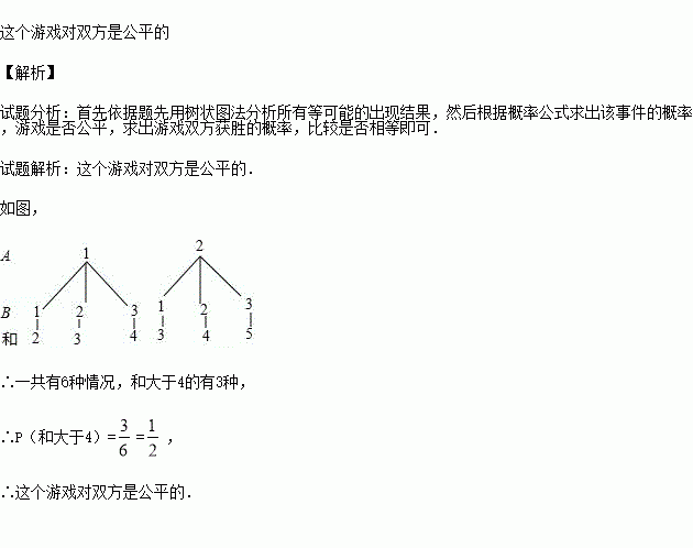 小兰和小颖用下面两个可以转动的转盘做游戏,每个转盘被分成面积相等的几个扇形.转动两个转盘各一次,若两次指针所指数字之和为4,则小兰胜,否则小颖胜(指针指在分界线时重转).这个游戏对双方公平吗?请用树状图或列表法说明理由.