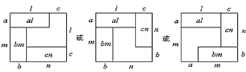 (2)已知正数a,b,c和m,n,l,满足a+m=b+n=c+l。试构造边长为k的正方形,利用图形面积来说明al+bm+cn<k2。