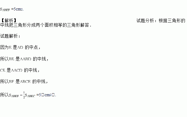 如图,是的边上任意一点,、分别是线段、的中点,且的面积为20 cm2,求的面积.