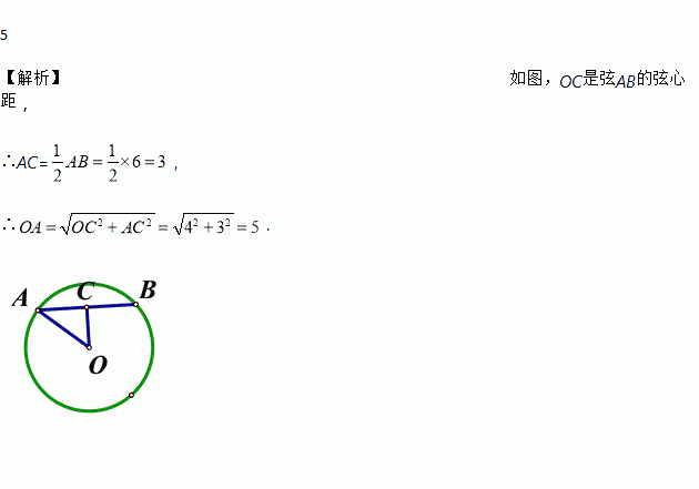 在圆O中,弦AB的长为6,它所对应的弦心距为4,那么半径OA=___.
