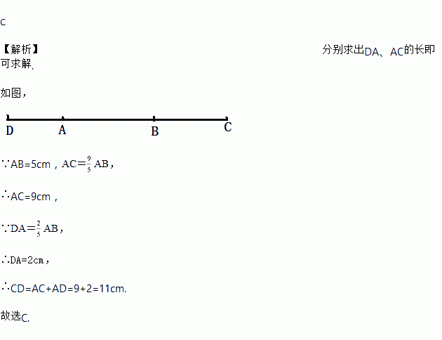 已知线段AB=5 cm,在AB的延长线上取一点C,使AC=