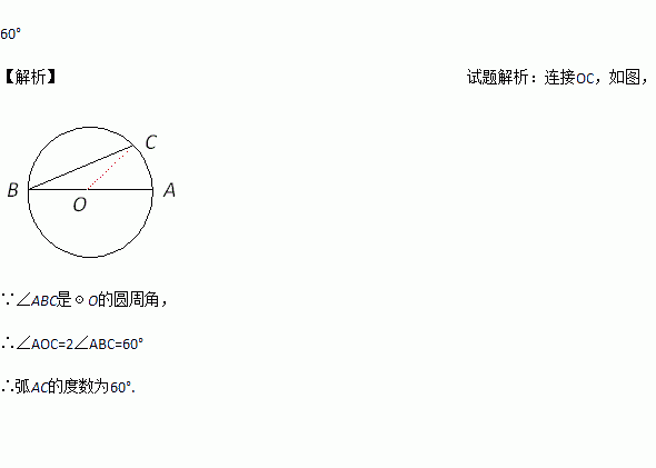 如图,AB为☉O的直径,BC为弦,若∠ABC = 30°,则 弧AC的度数为_____.