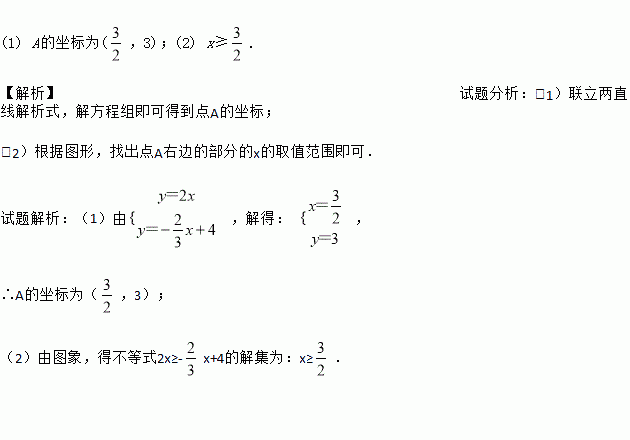 (2)根据图象,直接写出不等式2x≥-x+4的解集.