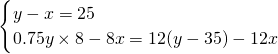 分析:本题中两个等量关系是:定价-进价=25元;定价×0.75×8件-8件的进价=(定价-35)×12件-12件的进价.据此可列方程组求解.