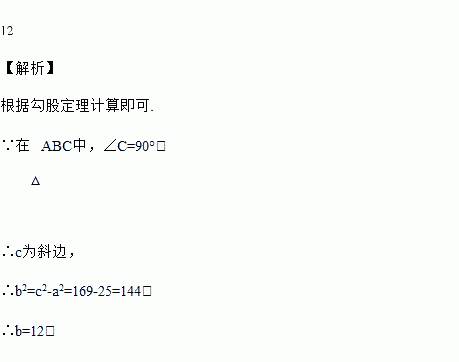 在△ABC中,∠C=90°,若a=5,c=13,则b=_____________.