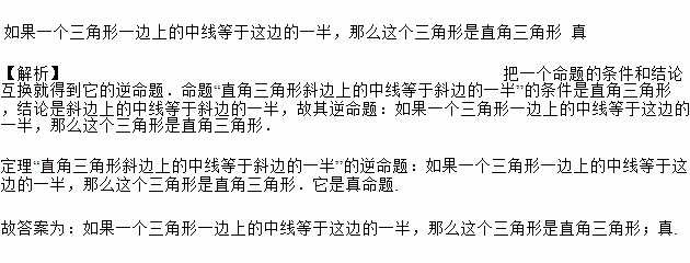 命题“直角三角形斜边上的中线等于斜边的一半”的逆命题是 ___________________ .它是 ________ 命题(填“真”或“假”).
