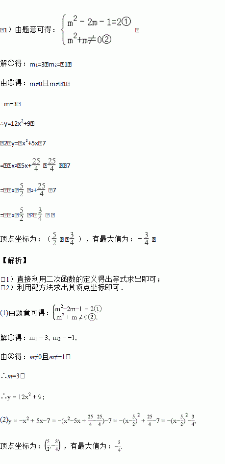 (1)已知y=(m2+m)+(m﹣3)x+m2是x的二次函数,求出它的解析式.