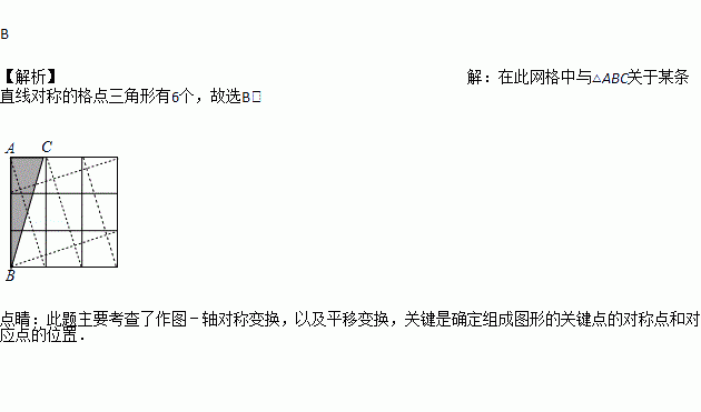 如图,在 3×3 的正方形网格中,与△ABC关于某条直线对称的格点三角形(顶点为格线交点的三角形)共有( )个
