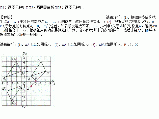 (3)在x轴上求作一点P,使△PAB的周长最小,请画出△PAB,并直接写出点P的坐标.