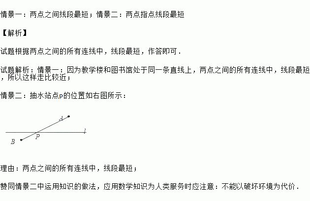 情景一:从教室到图书馆,总有少数同学不走人行道而横穿草坪,这是为什么呢?试用所学数学知识来说明这个问题.