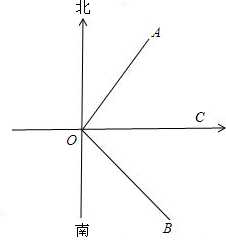 OA表示北偏东32°方向线,OB表示南偏东43°方向线,则∠AOB等于________°.