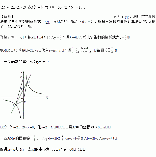 交于点A(1,4)和点B(-2,-2),与y轴交于点C.