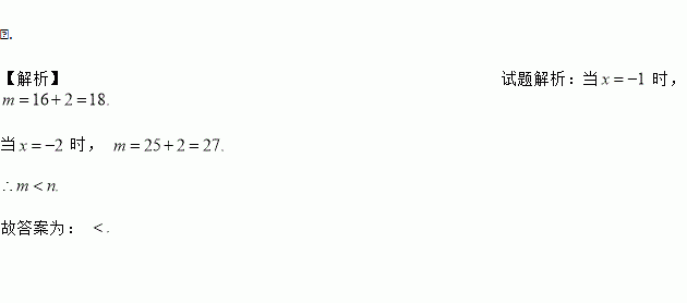 点A(-1,m)和点B(-2,n)都在抛物线上,则m与n的大小关系为m______n(填“”或“”).