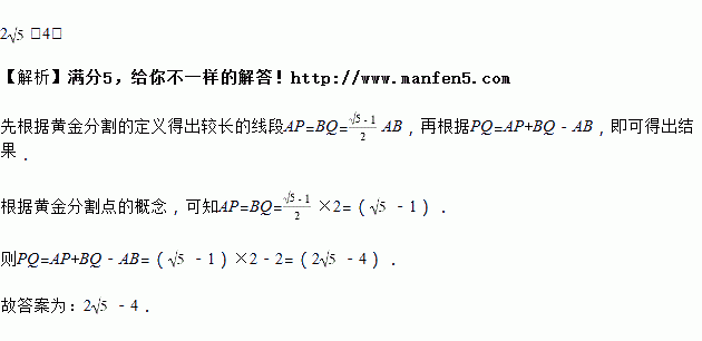 已知点P、Q为线段AB的黄金分割点,且AB=2,则PQ=_____.(结果保留根号)