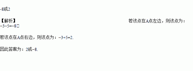 点A表示-3,在数轴上与点A距离5个单位长度的点表示的数为_______。