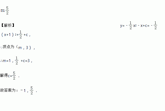 已知抛物线y=﹣x2﹣x+c的顶点为(m,3),则m=_____,c=_____.