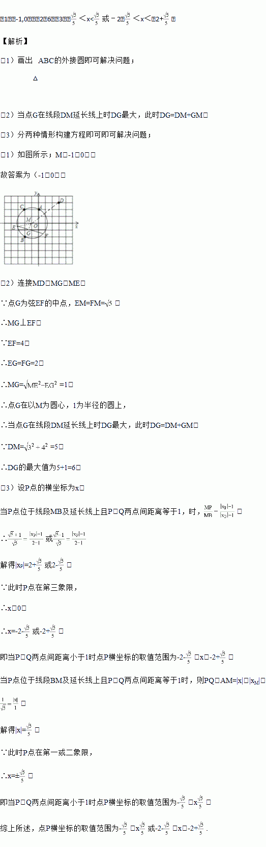 (2)若EF是⊙M的一条长为4的弦,点G为弦EF的中点,求DG的最大值;