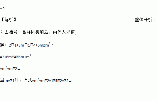 先化简,再求值:2(1+3m)﹣(4+5m﹣m2),其中m=﹣1.
