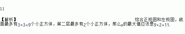 已知一个物体由x个相同的正方体堆成,它的正视图和左视图如图所示,那么x的最大值是_____.