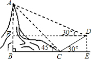 分析:易证△ABC是等腰直角三角形,直角△CDE中已知边CD和∠DCE=30°,则三角形的三边的长度可以得到CE,DE的长度,设BC=x,则AE和DF即可用含x的代数式表示出来,在直角△AED中,利用三角函数即可得到一个关于x的方程,即可求得x的值.