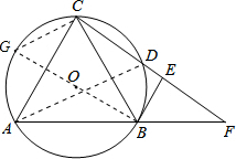 分析:(1)如图,连接BO并延长交⊙O于点G,连接CG.欲证明BE是⊙O的切线,只需证得GB⊥BE即可;