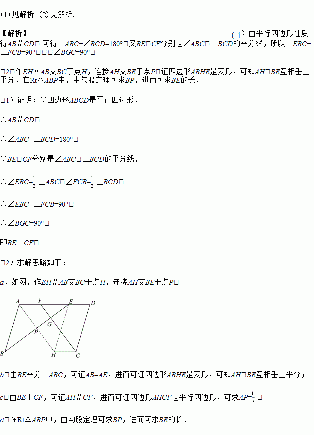 (2)若AB=a,CF=b,写出求BE的长的思路.