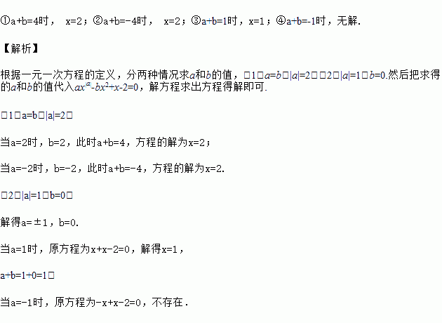已知a是非零整数,关于x的方程ax|a|-bx2+x-2=0是一元一次方程,求a+b的值与方程的解.